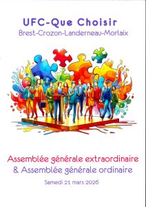 Les membres de l’Association Locale UFC Que Choisir de Brest sont conviés aux Assemblées Générales Extraordinaire et Ordinaire qui se tiendront le 21/03/2026 à 14H au 6 rue Pen Ar Créach 29200 BREST.